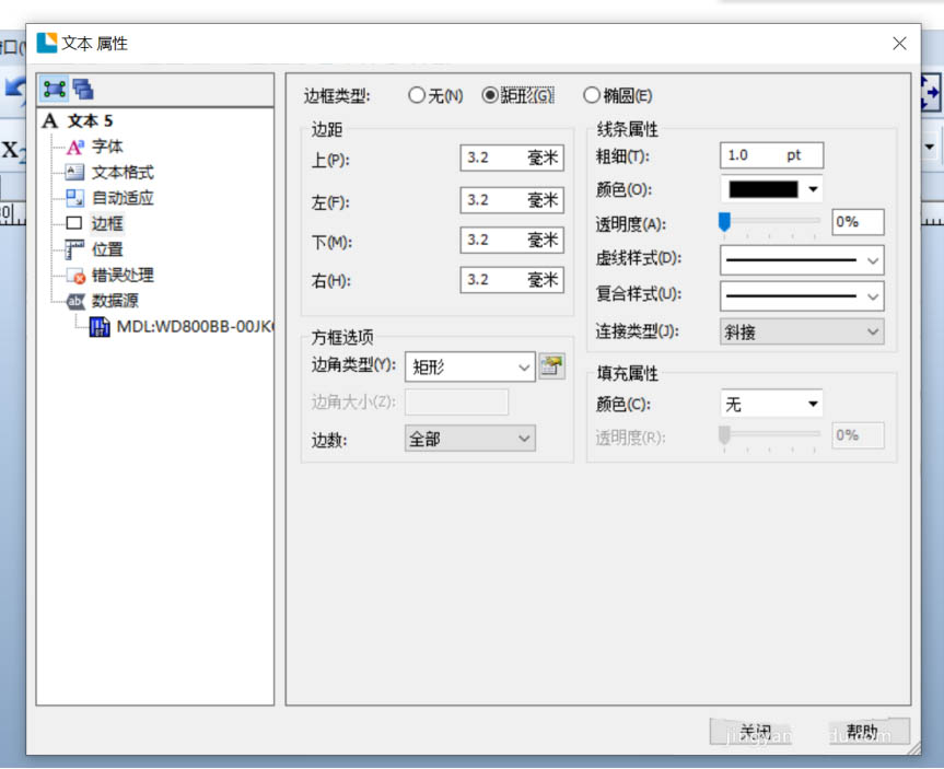 8、其中,MOL、DATE、DCM在一个文本框内,且需要用边框框起来,所以,需要为它添加一个边框。选中文本框。右键“属性”,在弹出窗口的菜单中选择“边框”,选择“边框类型”中的“矩形”,如图8