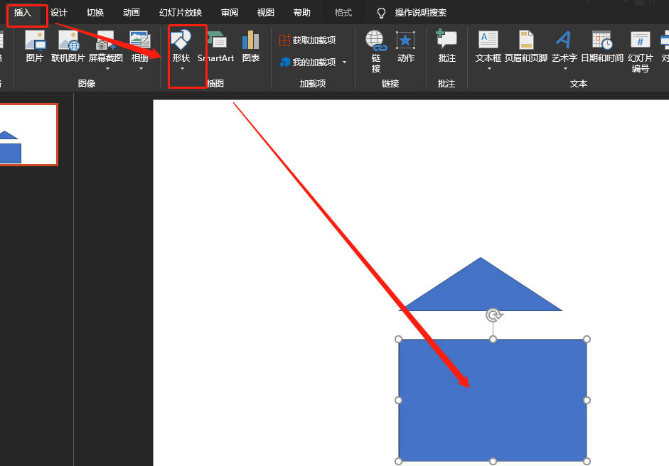 2、插入矩形。如图: