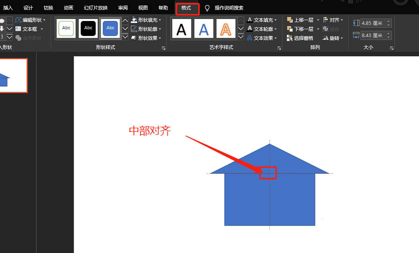 3、矩形与三角形中部对齐。如图:
