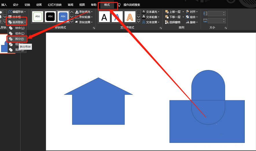 6、插入矩形,并与圆角矩形拆分。如图: