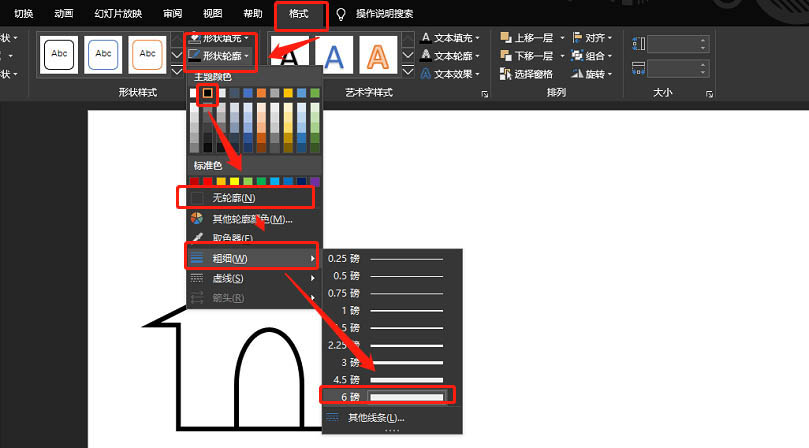 6、调整圆形格式为:无填充,黑色边框。如图: