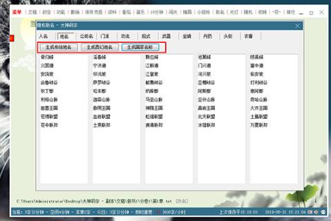 3、说完了人名再来说说地名,地名是不能够输入指定的地名进行生成,只可以在传统地名、西幻地名以及国家名称中进行选择与生成,如下图所示:
