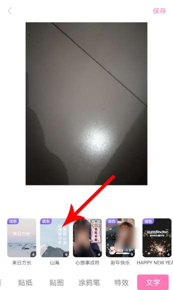 打开图片后向左滑动菜单栏,然后点击“文字”。
