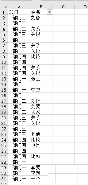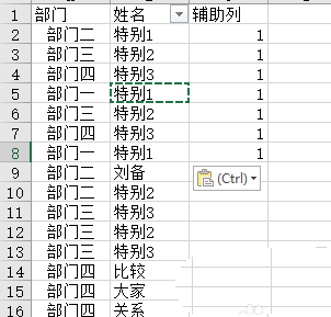 6、再对辅助列进行排序,这样姓名为空的行就都排在了上面。
