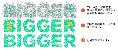 当然,如果没有POLYA Regular字体,你也可以用其它任何字体代替(最好是粗一点的),然后插入多个集合图形(图形与文字相交,且图形越多越小,效果越好),再全选所有元素,拆分。