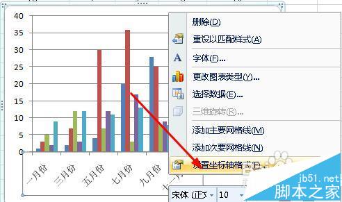 4、右键单击该横坐标轴,然后选择:设置坐标轴格式