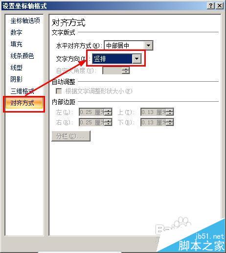 5、在弹出的对话框中,我们点击对齐方式选项,然后设置文字方向为竖排,点击关闭按钮