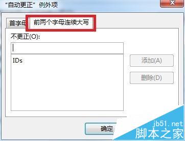7、在弹出的例外项对话框中。点击”前两个字母连续大小写“选项,在下面输入要添加的排除的特定单词,确定即可。最后,回到工作界面,你可以自己测试一下刚才设置的效果。