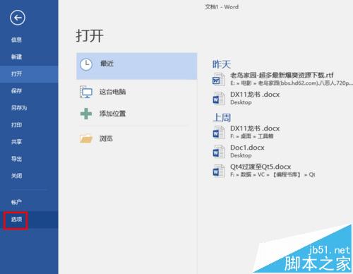 1、打开Word 2016,点击菜单“文件”-“选项”。