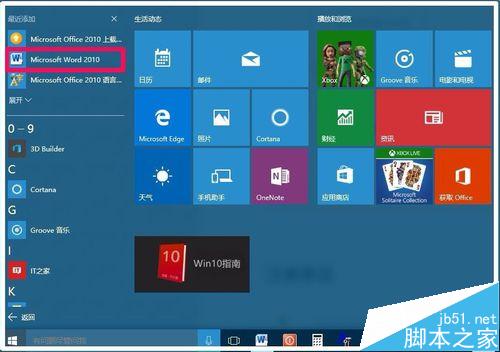 4、我们再用键盘上的方向键移动到Microsoft Word 2010,回车,就可以打开Microsoft Word 2010的编辑窗口了。