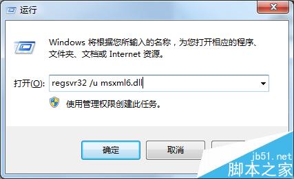 a、在运行里输入:regsvr32 /u msxml6.dll,然后确定