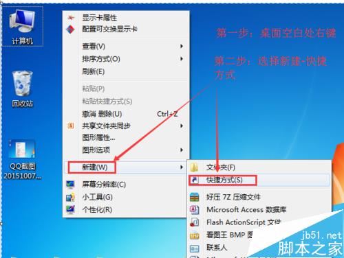 1、左面空白处 右键选择新建选项里面的快捷方式命令