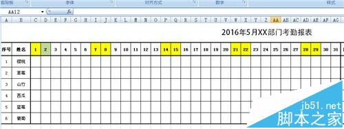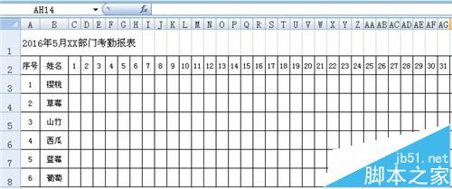 表格标题:年月+公司/部门名称+考勤报表,如2016年4月某部门考勤报表;