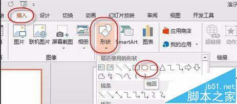 1、打开ppt,进入主界面,然后点击“插入”→“形状”→选择“椭圆”工具