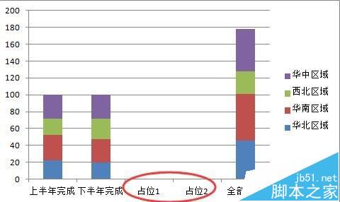 8、单击网格线,按Delete键删除。单击次要纵坐标轴,按Delete键删除。单击占位1和占位2图例项,按Delete键删除,要保证 上半年下半年的系列重叠设置。