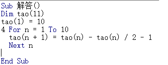 5、继续编程,判断tao(10),如果是10,就输出tao(1)的数字,否则tao(1)逐渐变大,再去循环语句,计算tao(10)。
