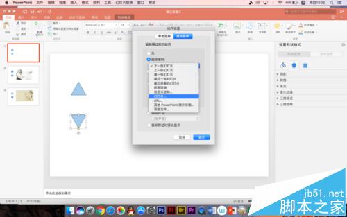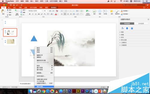 7、回到第一张幻灯片,右击按钮会出现操作设置,点击,右边栏是经过时显示,所以换到右边
