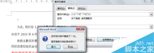 4、提示是否搜索其他文档,如果是1处替换,直接否就可以,多处替换,需要重复替换。