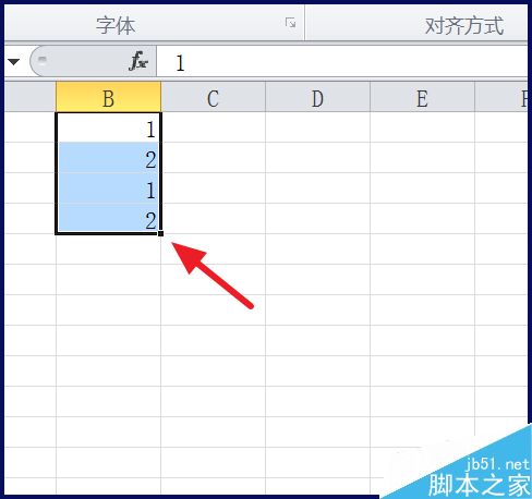 2、在数据后方增加一列,输入【1,2,1,2】,选中后,鼠标移动到右下角变成【+】后