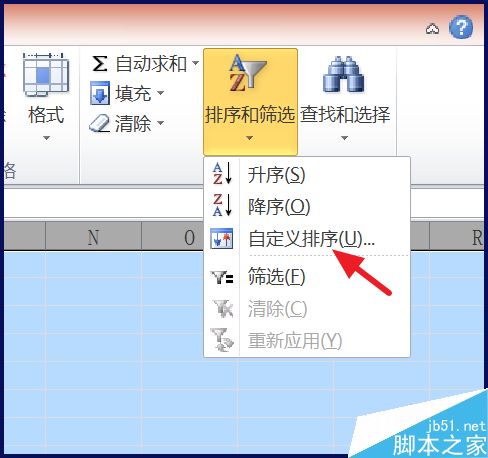 4、选择所有数据,点击开始下的【排序与筛选】下的【自定义排序】