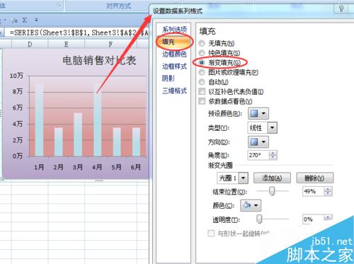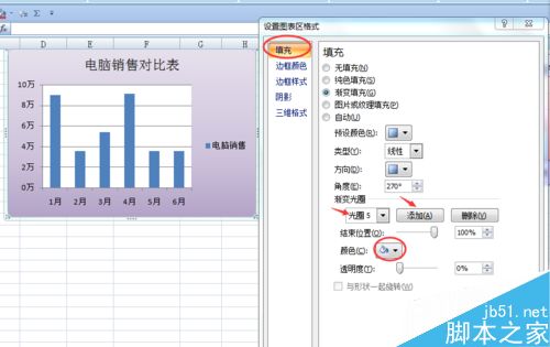 在“填充”里选择“渐变填充”来设置自己想要的颜色和形式;