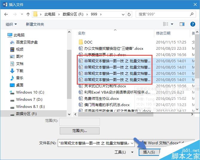 之后选中全部要插入的Word文档,点击“插入”按钮即可。