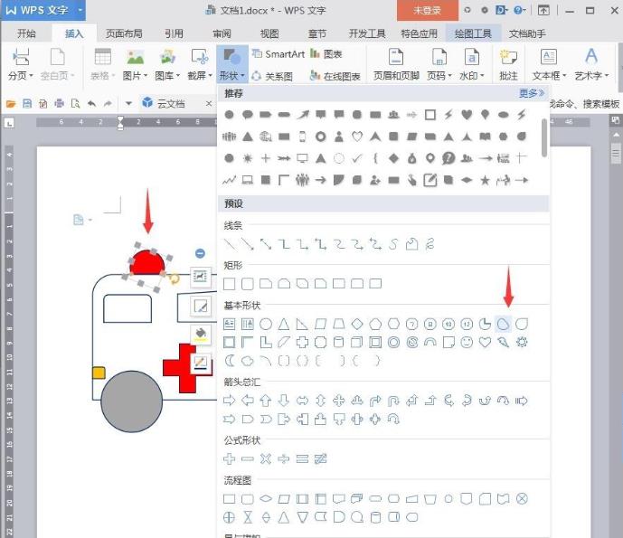 WPS文档想要设计救护车卡通图标,该怎么设计呢?插入同侧圆角矩形、椭圆、流程图手动输入、十字架、半圆,设置相应的颜色,组合成救护车,完成后截图保存,下面我们就来看看详细的教程。