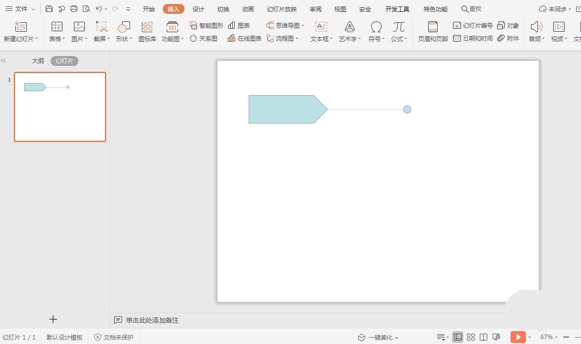 3、然后插入一个圆形,放置在直线那个右侧。