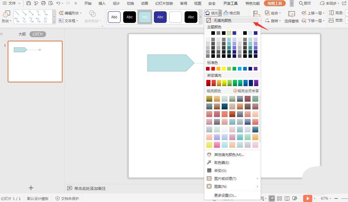 4、选中圆形,在绘图工具中点击填充,选择其中的“无填充颜色”。