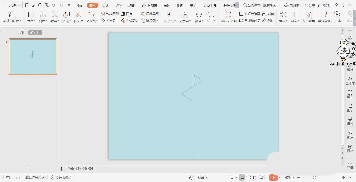 4、接着,插入两个大小相等的等腰三角形,放置如图所示的位置。