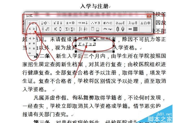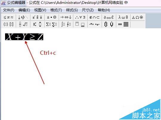 3、我这里也是简单的编辑了一个X+Y>=Z。编辑好之后将公式全部选定,Ctrl+c进行复制,复制好了就可以关闭这个公式编辑窗口了