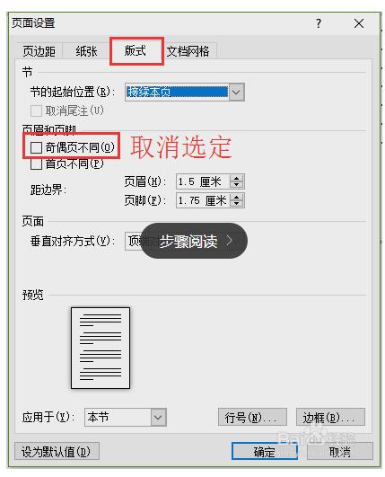 4、如图,取消对奇偶页的选定