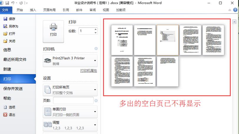 原由:想把毕业设计论文转换成 .swf 格式时,用 Flashpaper 虚拟打印预览发现多出一个空白页