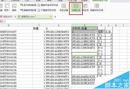 6、需要更改数据透视表的,WPS的数据透视表工具(最上方有)下面有分类汇总,你点击一下分类汇总就会隐藏分类汇总,默认是显示的。