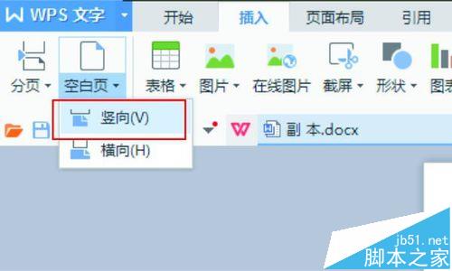 1、打开文件的封面,再选择“插入”“空白页”,再点击“空白页”右边下面的“三角标志”选择“竖向”如图所示