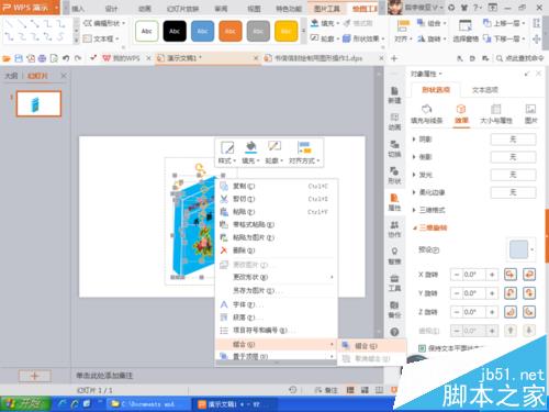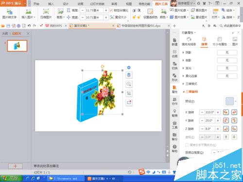 5、然后打开一张图片,将图片设置三维旋转效果,如图所示