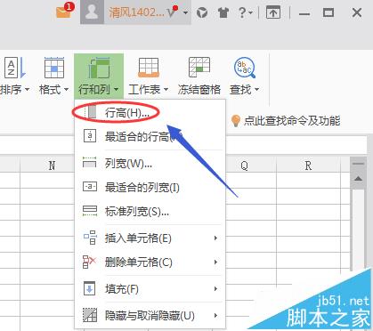 1、选中要调整行高的所有单元格,如图;然后依次点击快速工具栏的"行和高"-"行高";