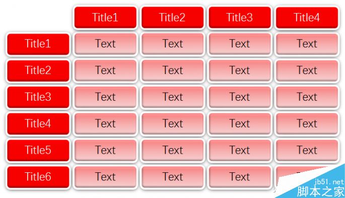 所谓偷染换柱,就是不用PowerPoint提供的表格工具制作表格,而是用它提供的“形状”工具来制作,可以给表格个性化以更大的空间。还是先来看看最终的效果。