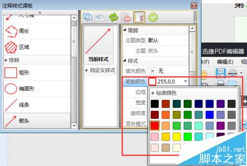 3、点击完PDF文件编辑器的箭头工具后,可以在PDF文件页面的右侧弹出箭头工具属性的页面,我们可以在其他队箭头的样式等进行设置。