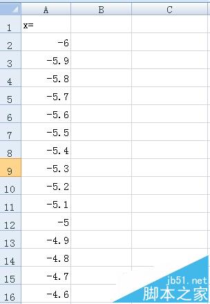 1、首先要根据函数表达式准备一组数据,然后利用该数据在图表中绘制出函数图像。本例中将数据放置在区域A:C列中,其中A列中的数值为函数自变量的值,在A列的A1单元格输入"X=",表明这是自变量,A2、A3及以下的单元格内逐次从小到大输入自变量的各个值,实际输入的时候,通常应用等差数列输入法。如何确定自变量的初始值,取值范围,数据点之间的步长是多少,这是要根据函数的具体特点来判断。如果想很快查到函数的极值或看出其发展趋势,给出的数据点也不一定非得是等差的,可以根据需要任意给定。如图,我作图用的取值范围为[-6,6],数值之间的间隔为“0.1”。