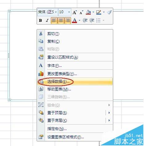 3、首先要选择图表的数据,鼠标在图表区内右击,在弹出的快捷菜单中选择“选择数据”。