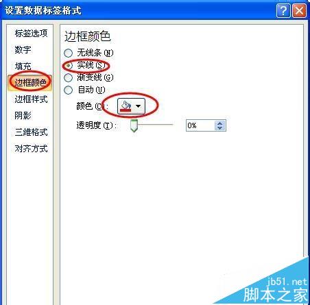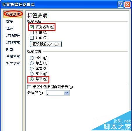 14、在弹出的“设置数据标签格式”对话框中,分别设置函数标签的内容、位置及边框颜色等。