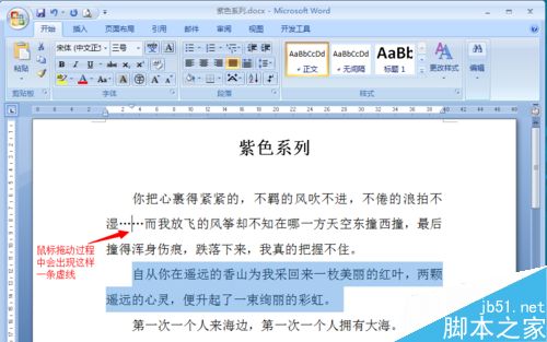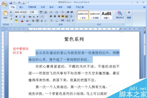 方法二:选中要移动的文本,按下鼠标左键直接拖动选中的文本,到指定位置松开鼠标左键即可