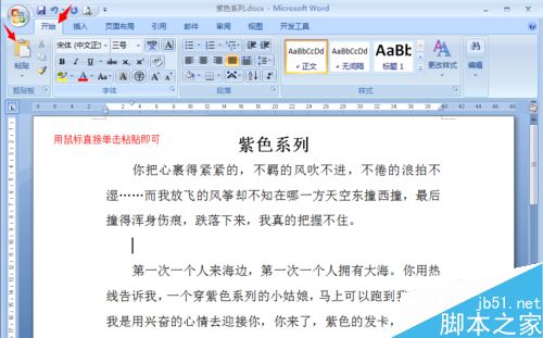 (4)按Ctrl+V(粘贴)组合键或按“开始”菜单里的“粘贴”工具