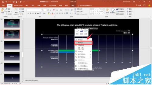 2、我们选中图表内容,右键或者快捷键进行复制,然后跳到一张背景图片相同的空白PPT页面。