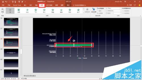7、选中我们想要利用动画效果演示的图表元素,然后点击动画效果。接下来就是大家尽情发挥想象力的时间了。其它样本数据做法类似,只需要在另一张底版上重复以上步骤即可。