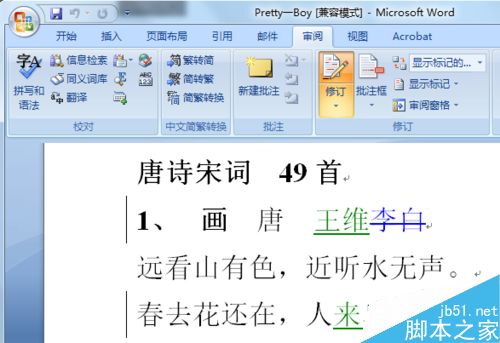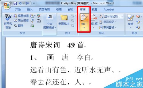 1、首先打开需要修订的word文档,然后在菜单栏中选择审阅,再点击修订打开word修订模式。