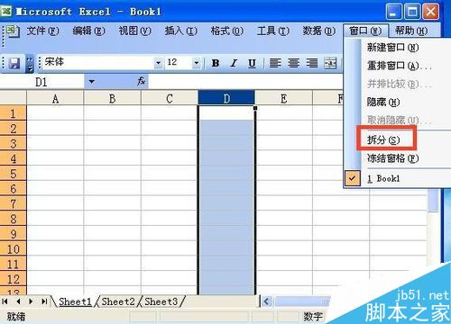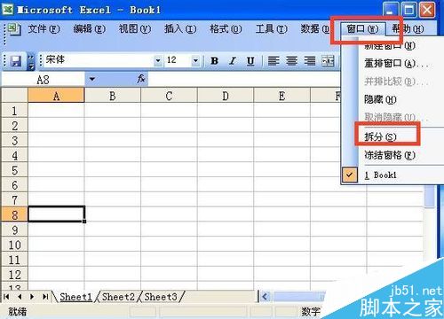 2、点击表格左侧的数字以后点击上面的窗口,然后再点击下拉菜单上面的拆开