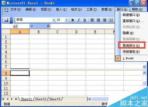 3、如果要取消拆开也只需要点击窗口,然后点击下拉菜单上面的取消拆开就可以了