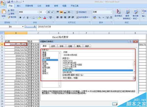 6、设置单元格时间格式: